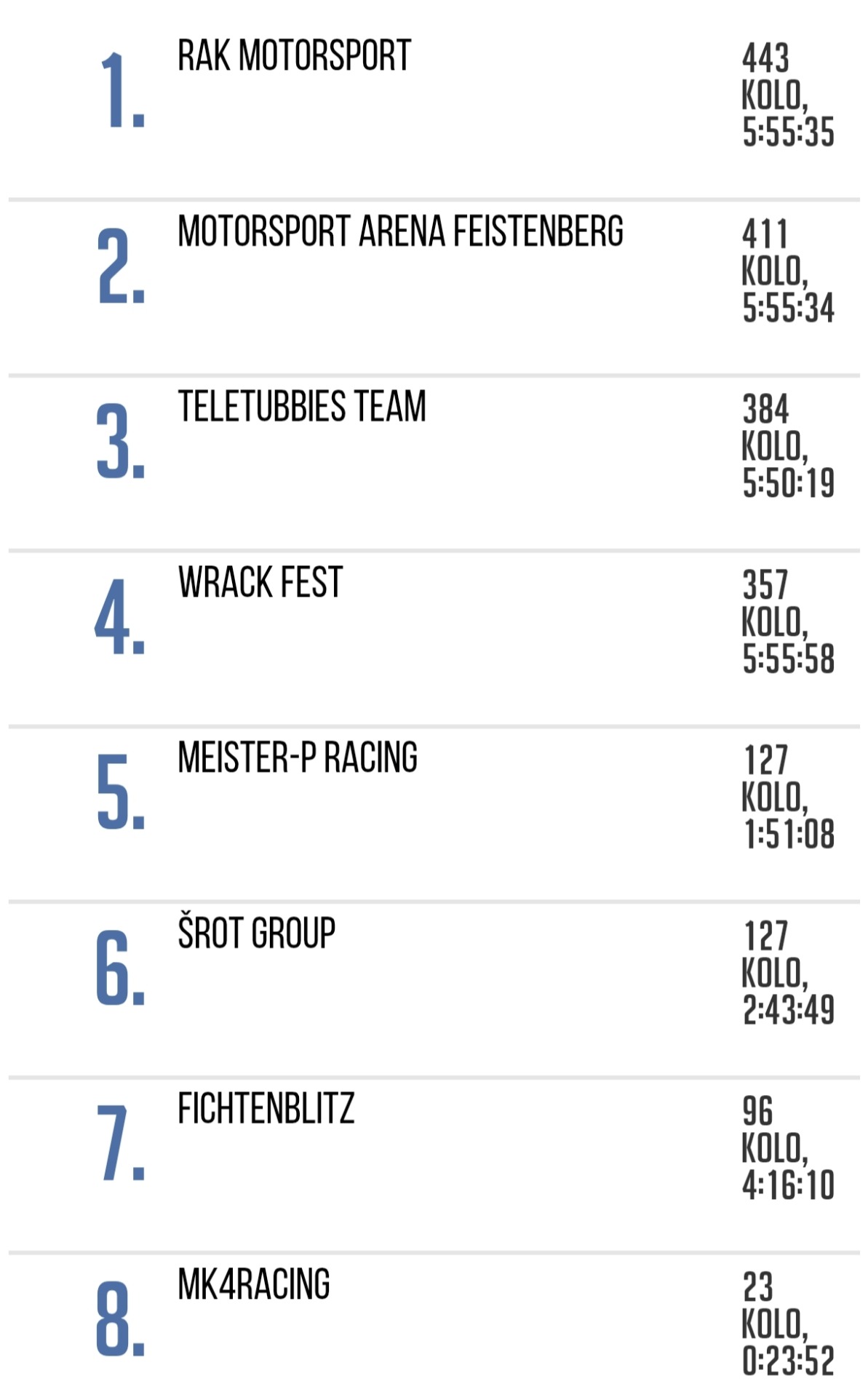 Pořadí Číslo Jméno týmu Poč. Kol Nejlepší kolo